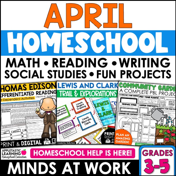 Put April brains to work with a homeschool bundle built around big ideas, bold thinkers, and hands-on doing. The Minds at Work theme spotlights world-changing inventors — the Wright Brothers, Thomas Edison, George Washington Carver, and Henry Ford — through close reading passages and ready-to-use lesson plans that build real comprehension. Modern interests stay in the mix with a full Video Games Reading Unit, while math comes alive through leveled practice in geometry, measurement, graphs, and more — plus dedicated measurement centers for added mastery. Extend the theme with an immersive Lewis & Clark Expedition study, invention-themed and seasonal April writing prompts, a Create-a-Community-Garden project-based challenge, and printable word searches and mazes to add light, meaningful fun. Everything you need to make April structured, simple, and seriously engaging — no over-planning required.